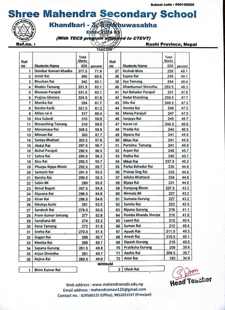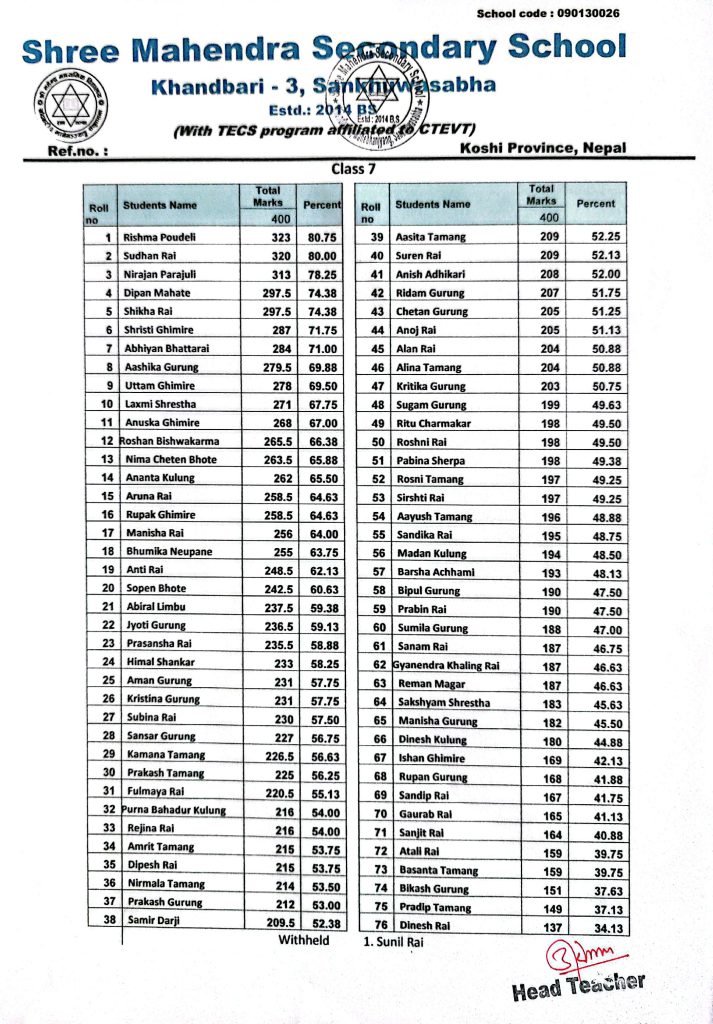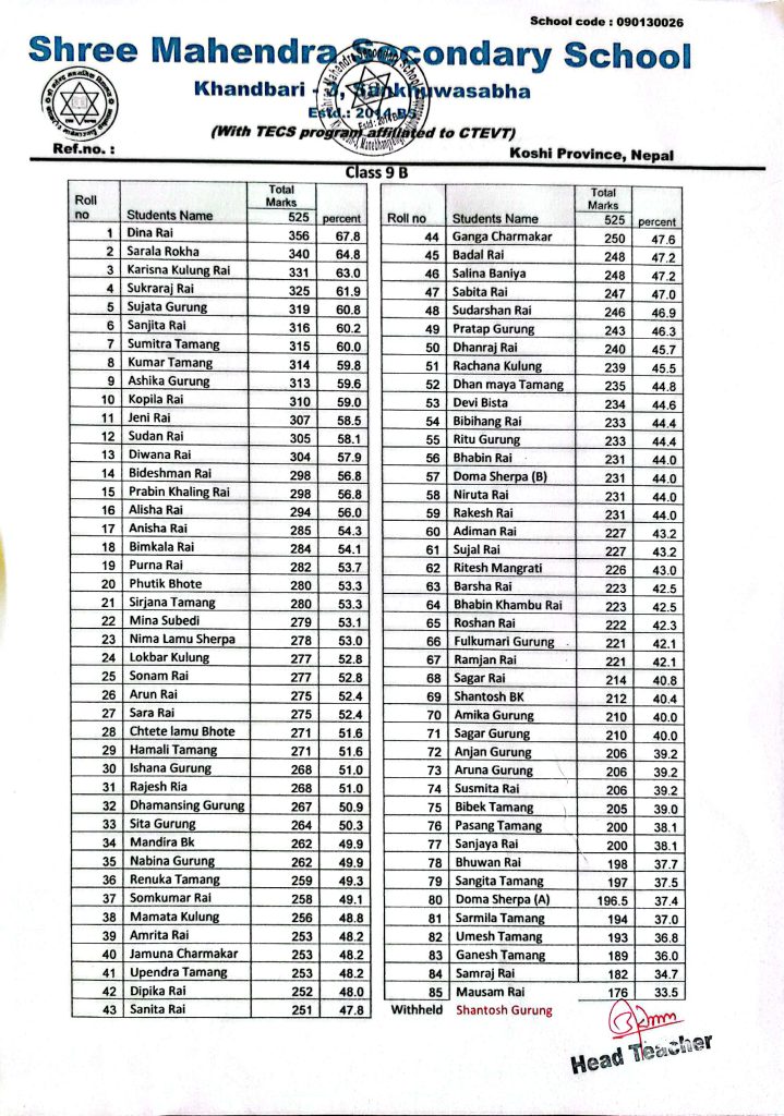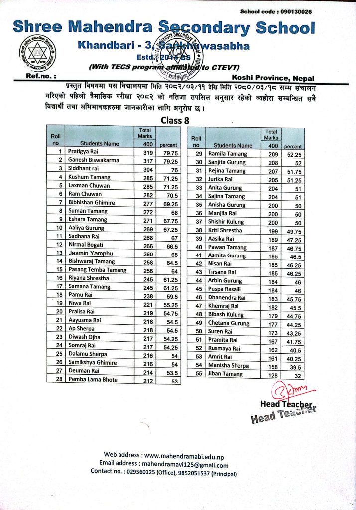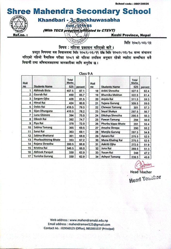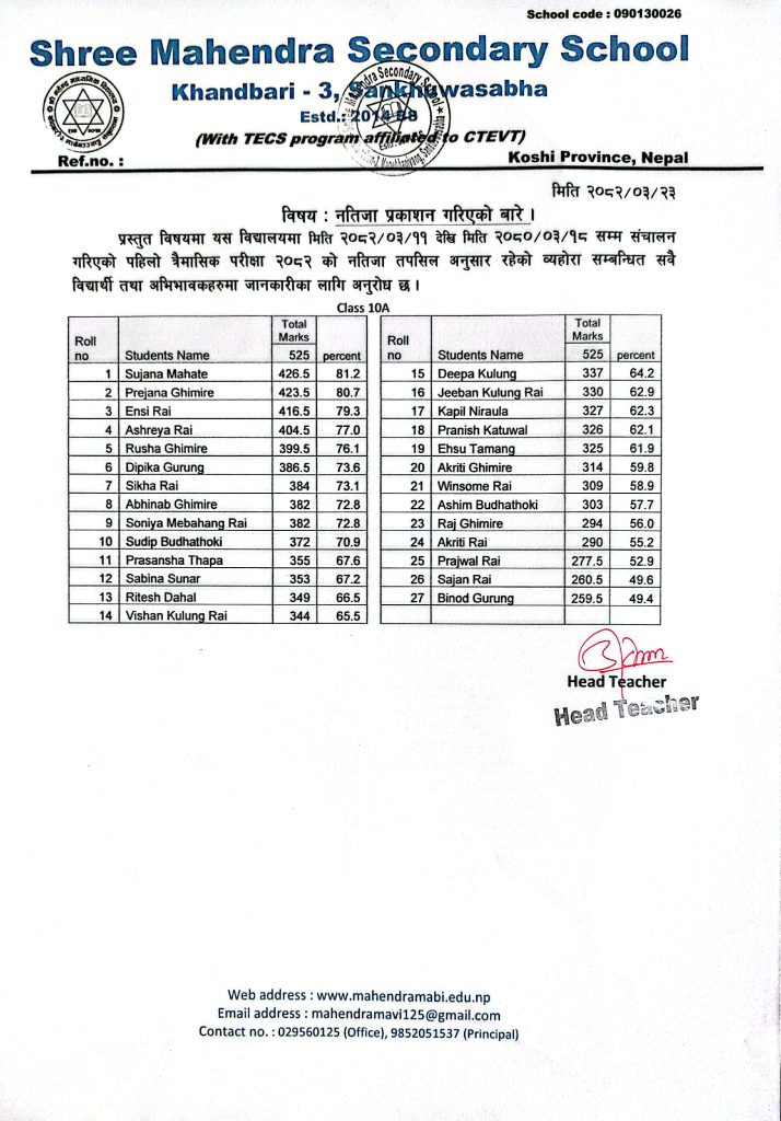 शैक्षिक सत्र २०८२ काे कक्षा ६-१० काे प्रथम त्रैमासिक परीक्षाको नतिजा